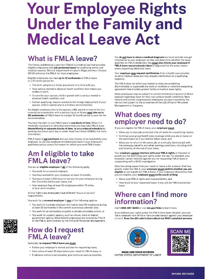 Click here to view important details regarding Employee Rights Under the Family Medical Leave Act.